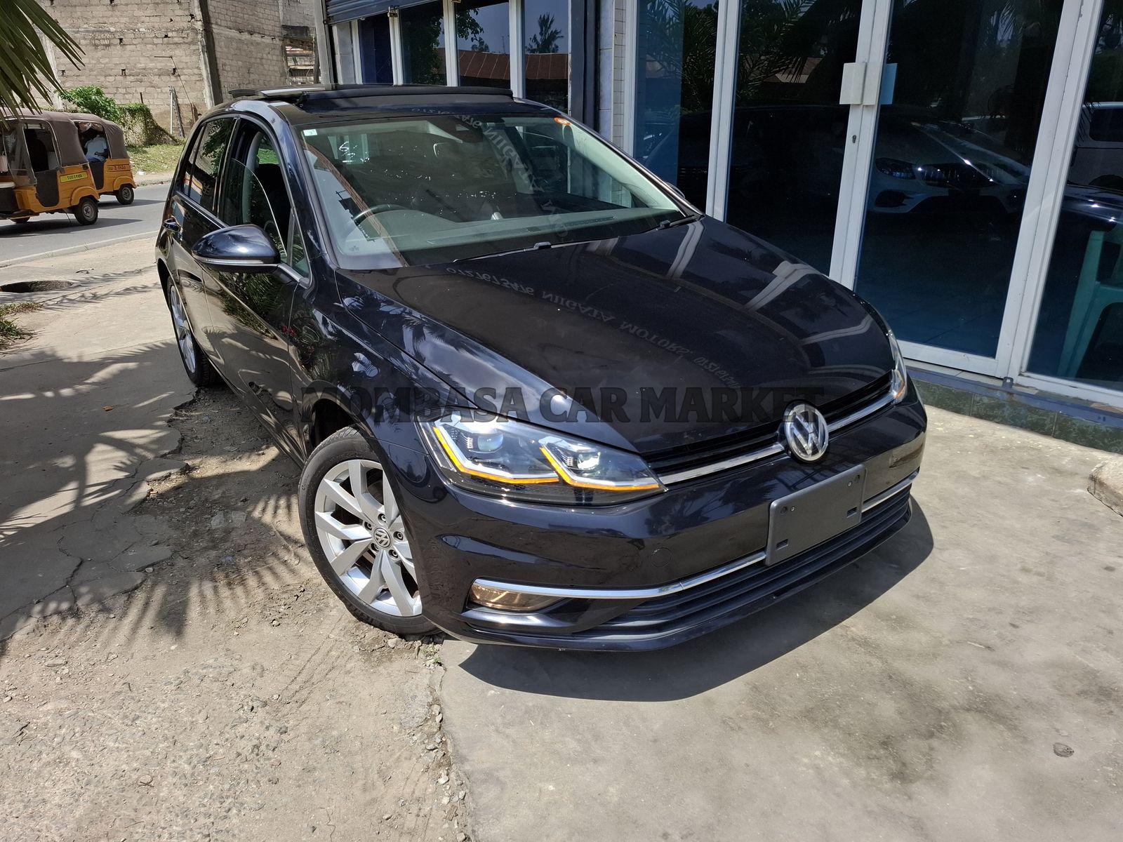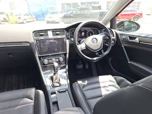 Volkswagen Golf Mk7.5 Comfort-line model with sunroof. It features a 1.4L TSI turbocharged engine. Features includes daytime running lights and alloy rims. It is available with various modern features such as anti-collision sensors, lane departure assist, and a 7-inch infotainment screen. The car is noted for its fuel efficiency, practical cargo space, and strong build quality.