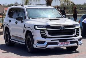 2023 land cruiser ZX with sunroof 7 seater petrol Milage 18k km cool box rear entertainment aftermarket body kit aftermarket rims FULL OPTION G63 style side exhaust